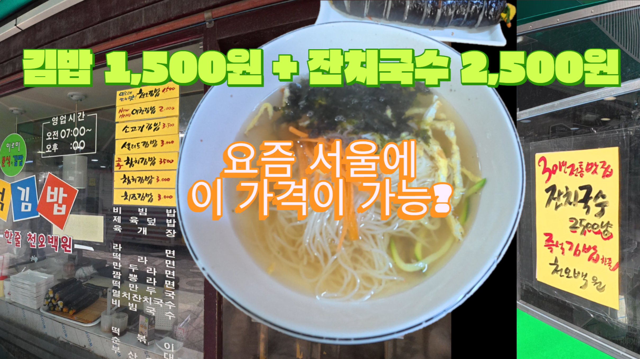 요즘 서울에 이 가격이 가능? 김밥 1,500원 + 잔치국수 2,500원
